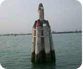 dei pali conficcati nel fondo a volte singoli (palina) a