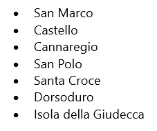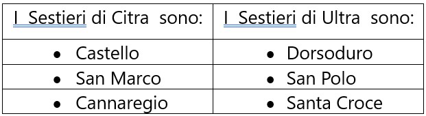Ricapitolando a Venezia i sestieri attuali sono: