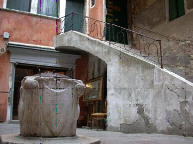 Siamo dalle parti delle trafficate Mercerie, vicino al ponte dei Bareteri, in corte Locatello. Per intenderci è la stradina parallela delle Mercerie che vanno a Rialto tra Trevisiol e il Sempione. In questa deliziosa corte tra le quinte dei lussuosi negozi e animata, si fa per dire, dalla presenza di un antiquario è ambientata la nostra breve leggenda. I pozzi, come sapete, erano una delle poche risorse idriche di Venezia. Quell'anno però era un anno molto secco che bisognava prendersi meno acqua possibile nei pozzi per accontentare tutti. Immaginatevi quante baruffe facevano la povera gente. Una sera un barcaiolo recandosi al pozzo di corte Lucatello trovò una signora vestita di bianco. Subito prese paura poiché a quell'ora della notte c'erano certe dicerie che vedevano delle streghe aggirarsi e che erano particolarmente feroci in quel momento di siccità. Ma subito la signora vestita di bianco disse al barcaiolo: "Non temere! Ma se stanotte non tornerai a casa prima dell'alba ti capiterà qualcosa di strano". Il barcaiolo, impaurito, minacciò la signora di andarsene continuando ad attingere l'acqua dal pozzo. La signora invece pregava. Ad un certo punto dal sottoportico entrò un uomo assalendo con un lungo coltello il barcaiolo colpendolo gravemente. La colluttazione durò quel tanto che bastava all'altro uomo di accorgersi di quello che stava facendo e di pentirsi. La signora in bianco allora prese il coltello intriso di sangue lasciato cadere a terra dall'assalitore, si avvicinò al pozzo e fece cadere dentro tre gocce di sangue. In quel momento l'acqua cominciò a salire dal pozzo fino a traboccare. Prese allora il suo fazzoletto, pulì la ferita del barcaiolo che cominciò subito a rimarginarsi. I due si guardarono negli occhi sentendo la signora in bianco dire a loro che da quel momento in poi vi sarebbe stata acqua in abbondanza. Se ne andarono non prima di aver visto la signora svanire nel nulla. La leggenda continua. Si dice che la signora in bianco sia stata murata all'interno del pozzo per occultare l'omicidio compiuto dal suo amante e che il suo spirito aleggi nella corte nelle notti di luna nuova. |